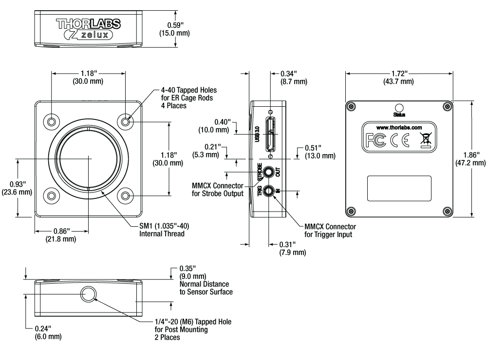 Lens Mount: Internal SM1 (1.035"-40) Threading; SM1A10 CS-Mount Adapter and SM1A10Z C-Mount Adapter Sold Below