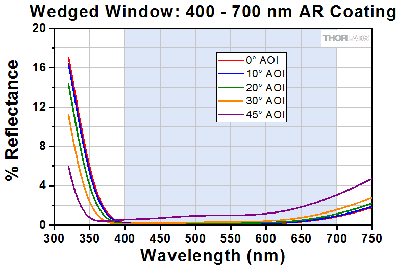 Built in Opticse (See the graph below): WW11050-C7 AR Coated Wedged Window (400- 700 nm)
