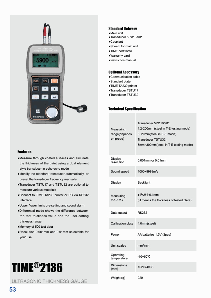 Measuring accuracy: ±1%H+0.1mm (H means the thickness of tested plate)