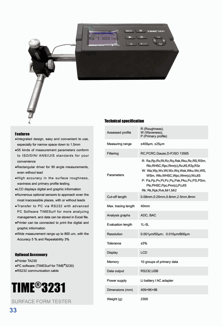 TIME 3231 Surface Roughness Tester (±400µm, ±25µm) | EMIN.CO.TH