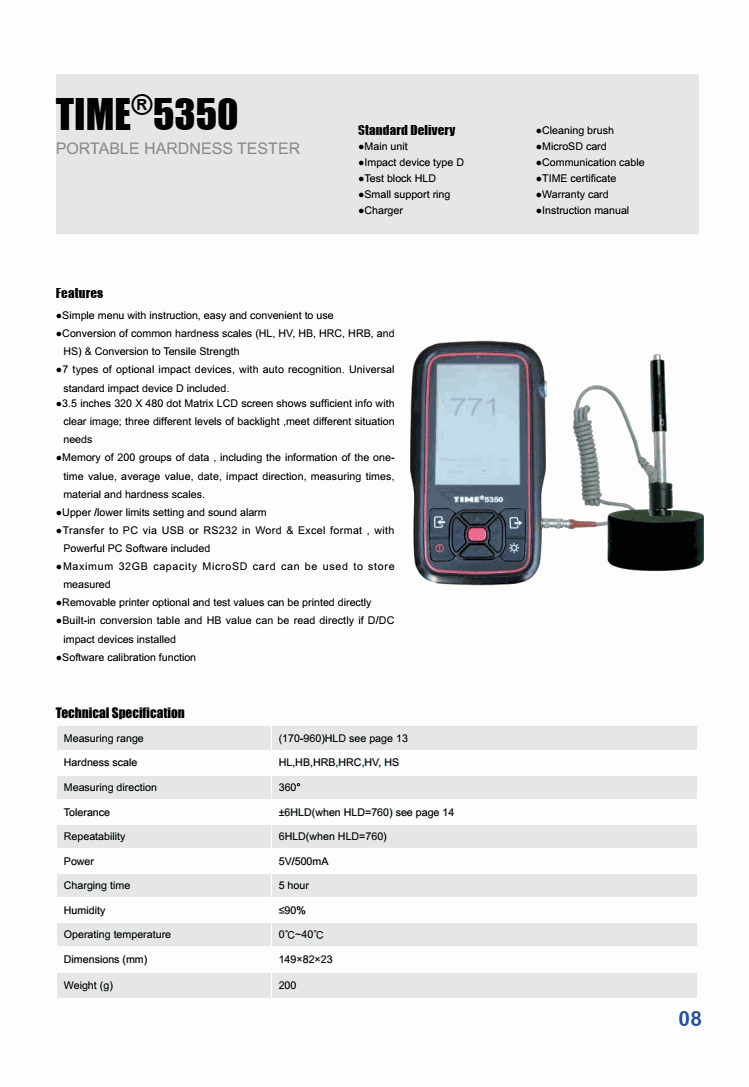 TIME 5350 Portable Hardness Tester (Leeb; type D; 170-960 HLD) | EMIN.CO.TH