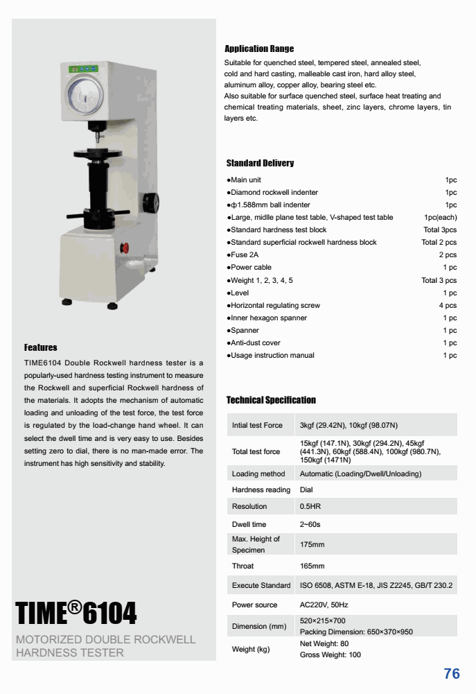 Execute standard: ISO 6508, ASTM E-18, jIS Z2245, GB/T 230.2