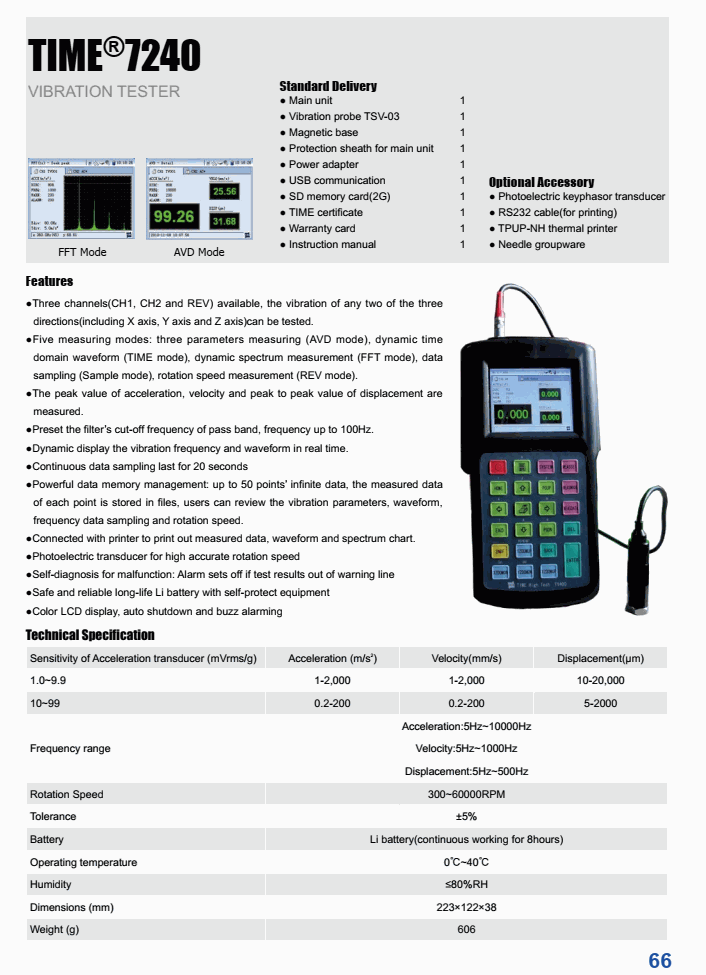 Sensitivity of Acceleration` transducer (mVrms/g): 1.0~9.9; 10~99