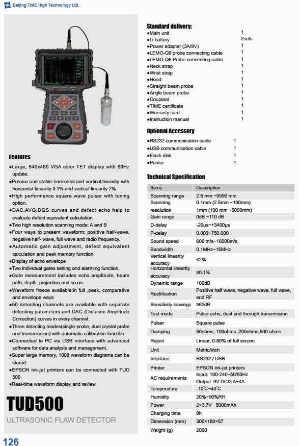 Sound speed: 600 m/s~16000m/s
