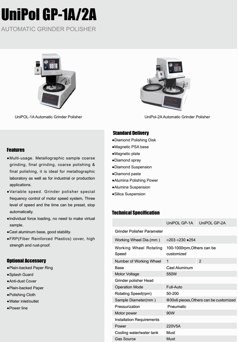Grinder Polisher Parameter