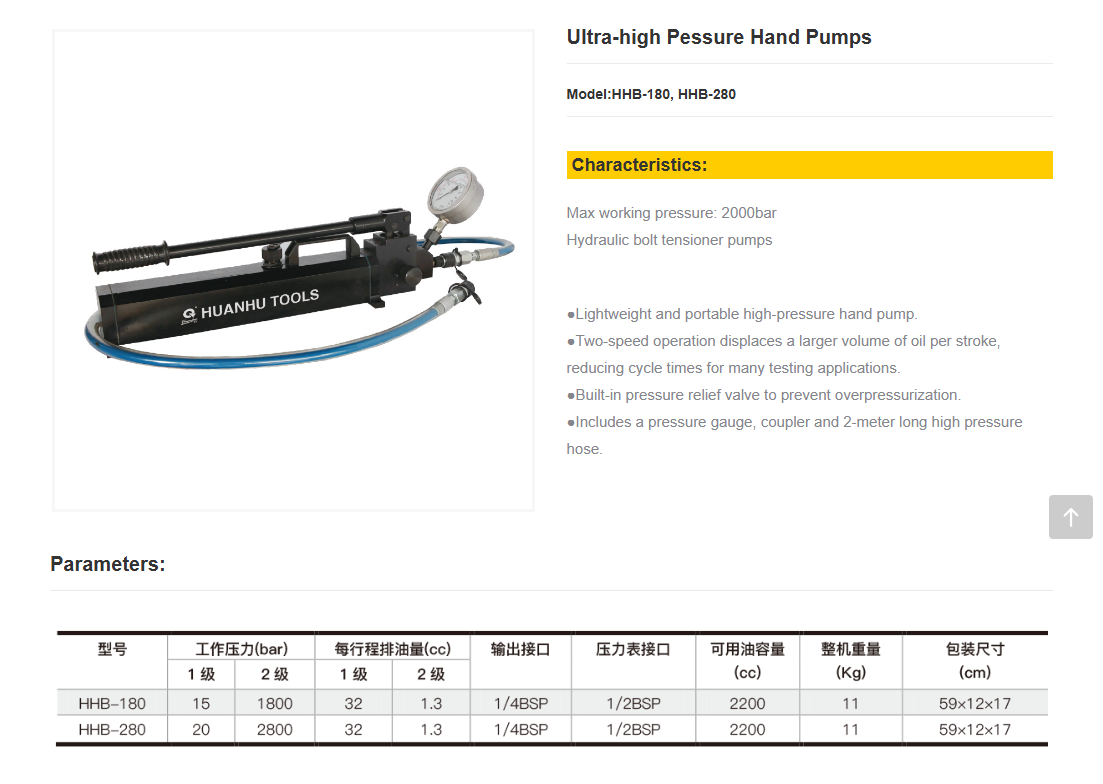 TLP HHB-280 Ultra-high Pessure Hand Pump (20~2800bar) | EMIN.CO.TH
