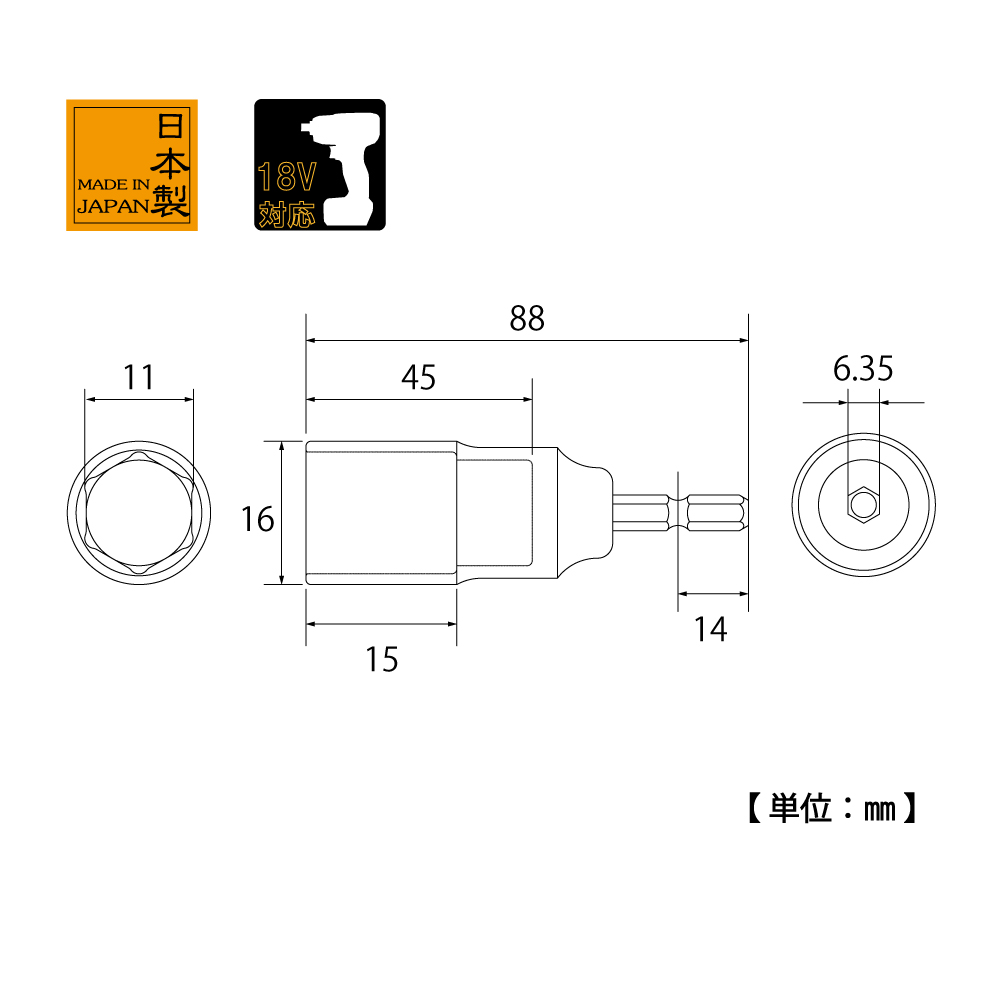 TOP Kogyo EDS-11C Compact Socket Bit (11mm) | EMIN.CO.TH
