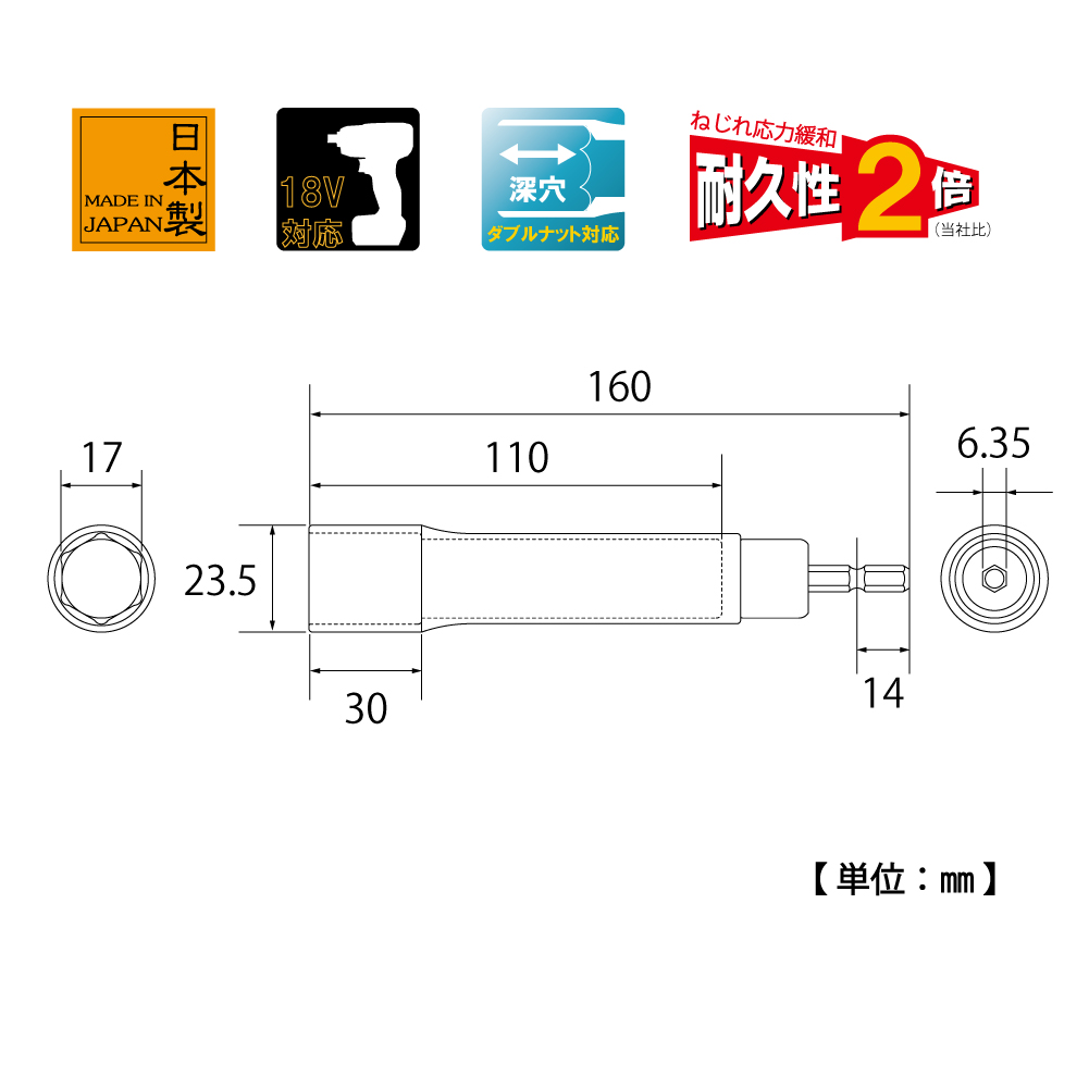 TOP Kogyo EDX-17L Alpha Socket Long Type (17mm) | EMIN.CO.TH