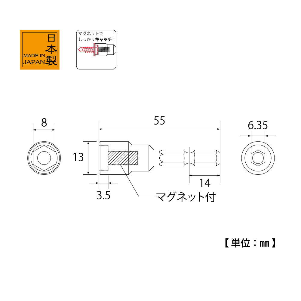 TOP Kogyo EHX-8M Hex Setter (with magnet) (8mm) | EMIN.CO.TH