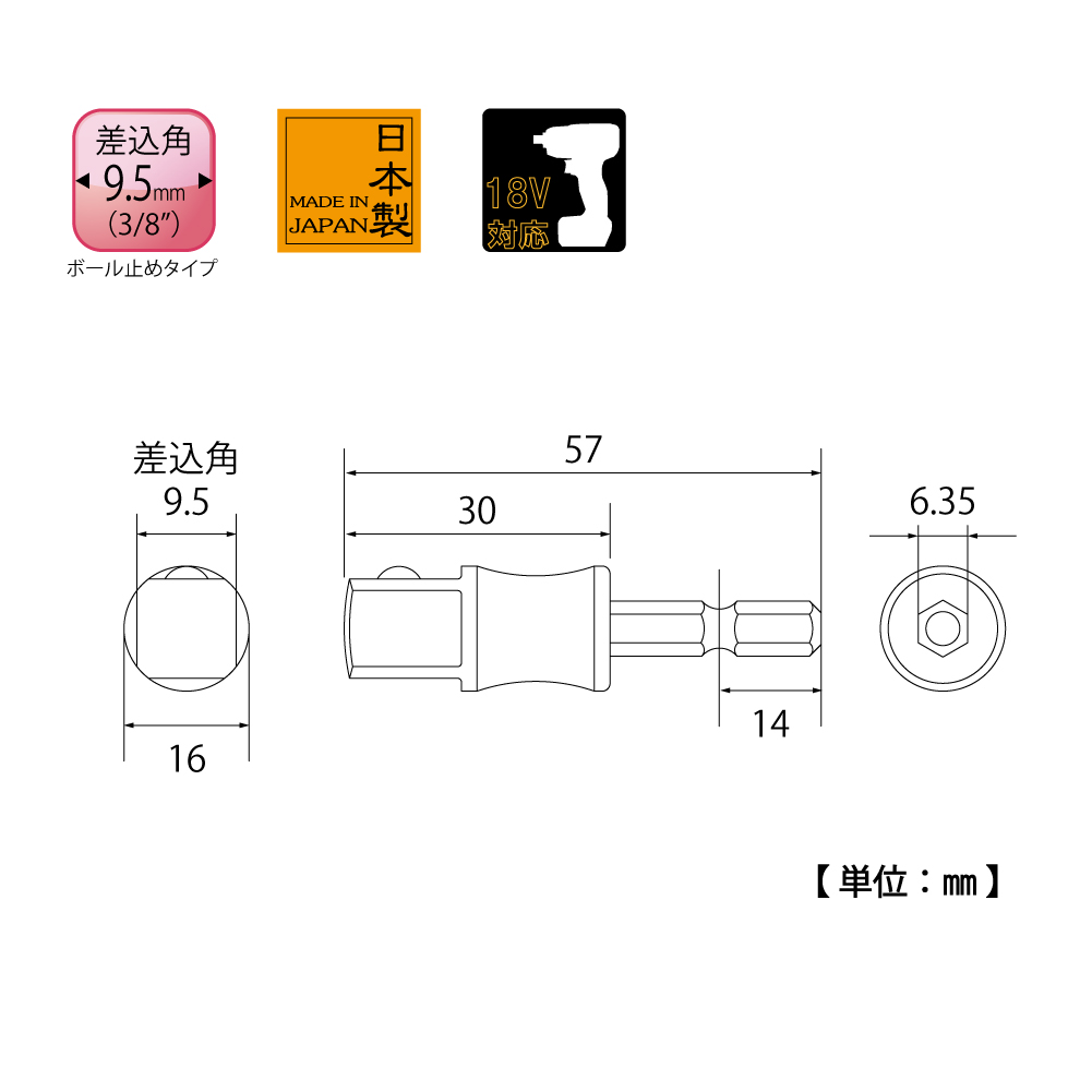 TOP Kogyo ESA-3D Socket Bit Adapter (57mm) | EMIN.CO.TH