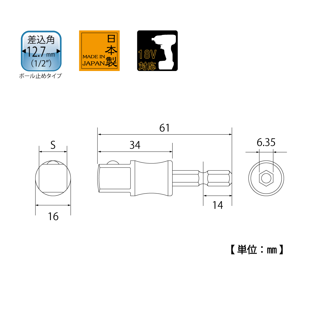 TOP Kogyo ESA-4D Socket Bit Adapter (61mm) | EMIN.CO.TH