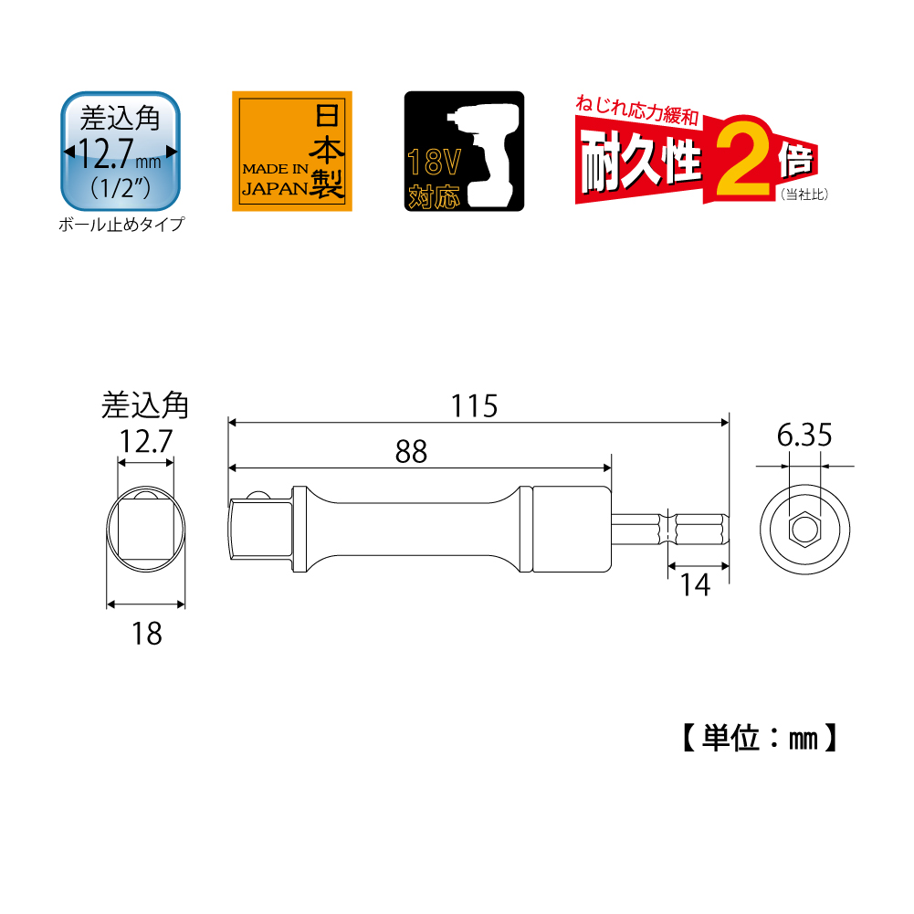 TOP Kogyo ESA-4DXL Alpha Socket Adapter Long Type (1/2", 115mm) | EMIN.CO.TH