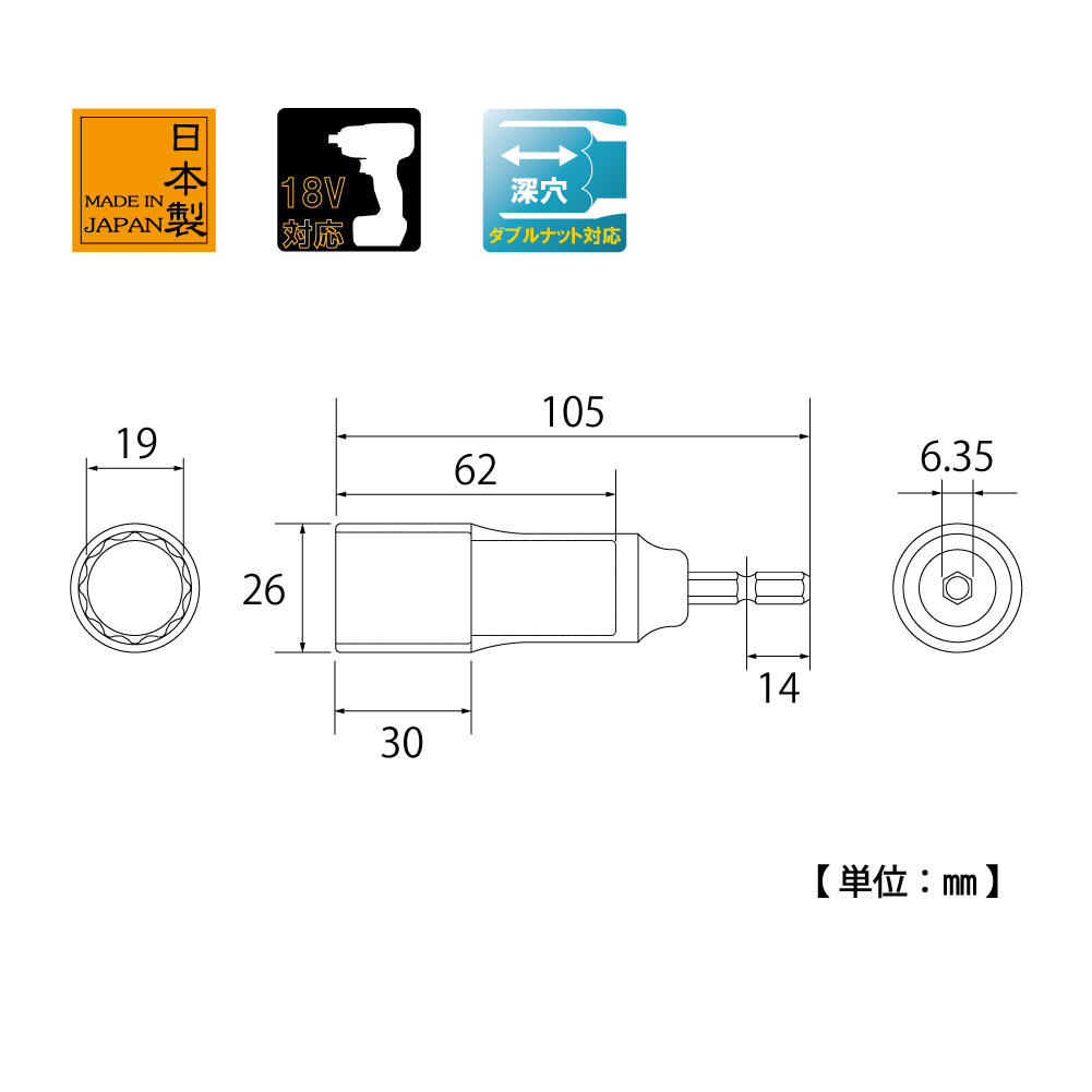 TOP Kogyo ESS-19 12-point socket (19mm) | EMIN.CO.TH