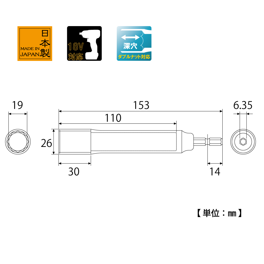 TOP Kogyo ESS-19L 12-point socket long type (19mm) | EMIN.CO.TH