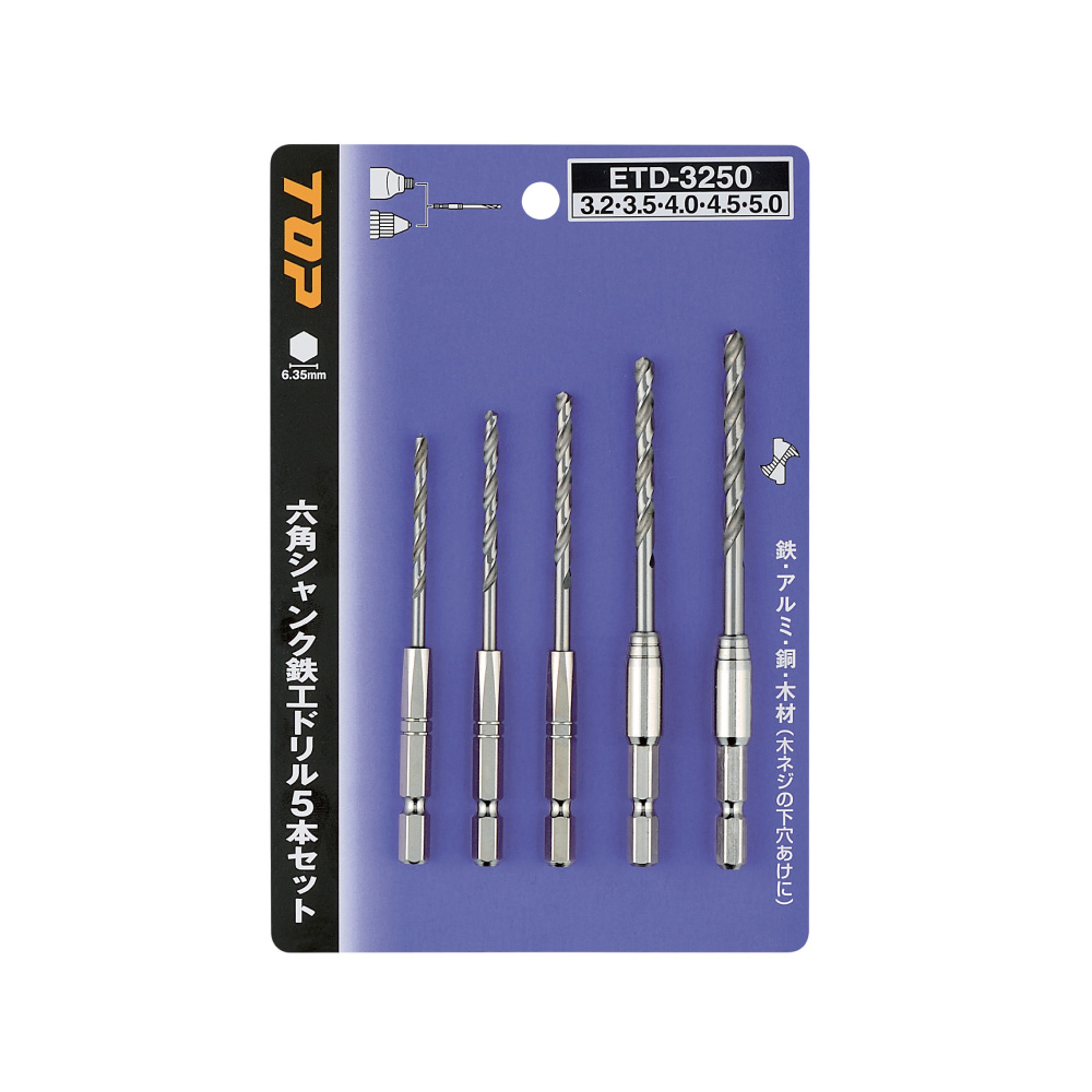 TOP Kogyo ETD-3250 Hex Shank Metal Drill Set (3.2, 3.5, 4.0, 4.5, 5.0mm) | EMIN.CO.TH