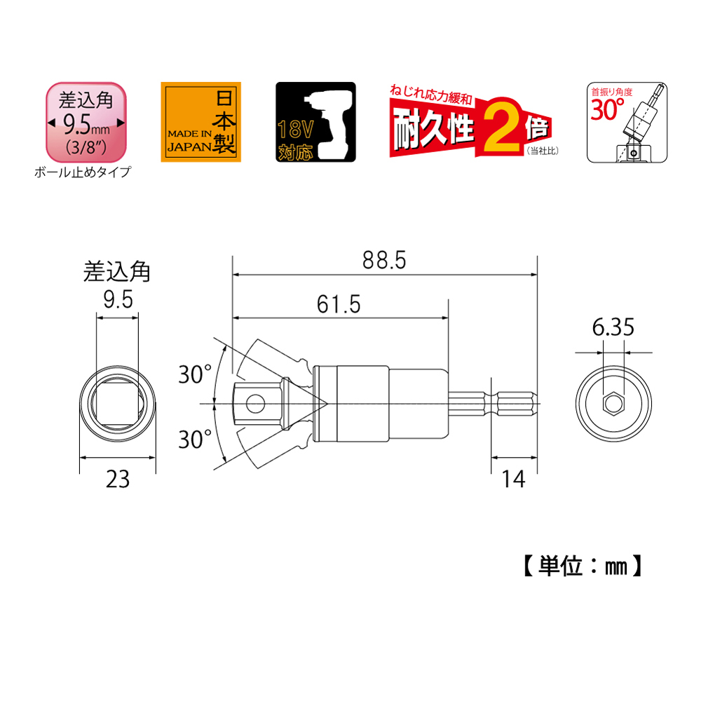 TOP Kogyo EUA-3DX Alpha Universal Socket Bit Adapter (1/4" ~ 3/8", 30 °) | EMIN.CO.TH