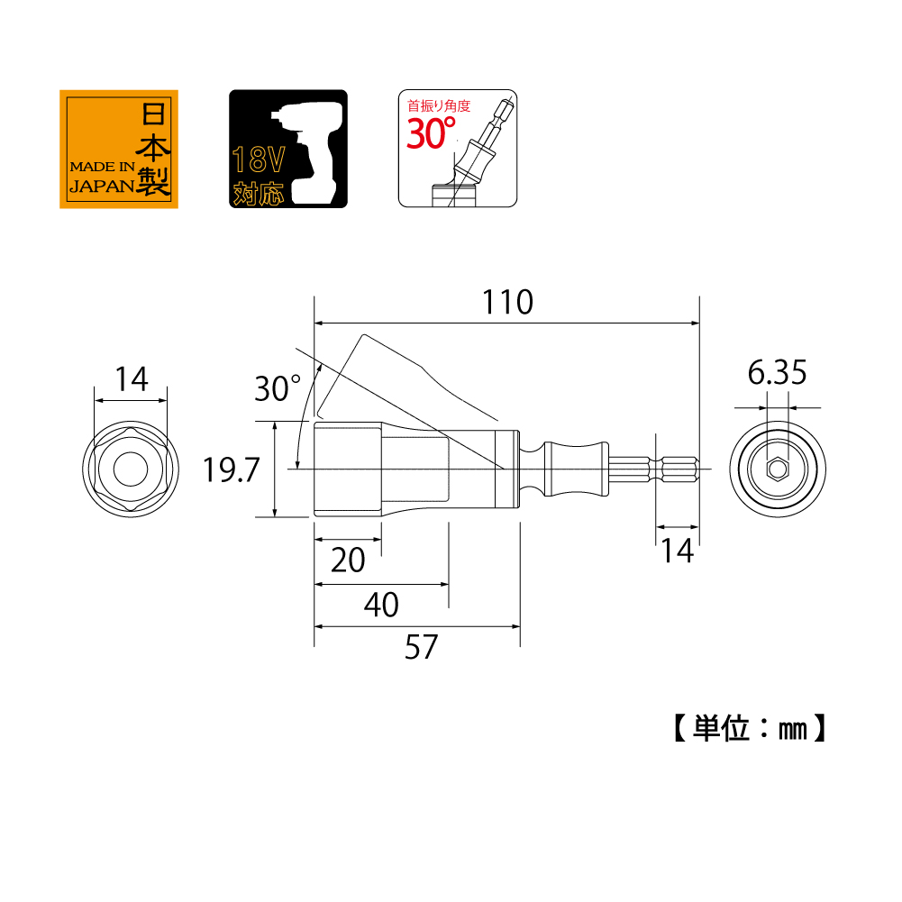 TOP Kogyo EUS-14 Universal Socket Bit (14mm, 30°) | EMIN.CO.TH