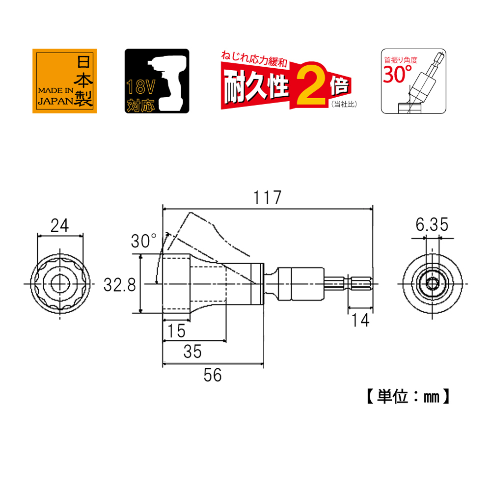 TOP Kogyo EUS-24SX Alpha Universal Socket (24mm, 30 °) | EMIN.CO.TH