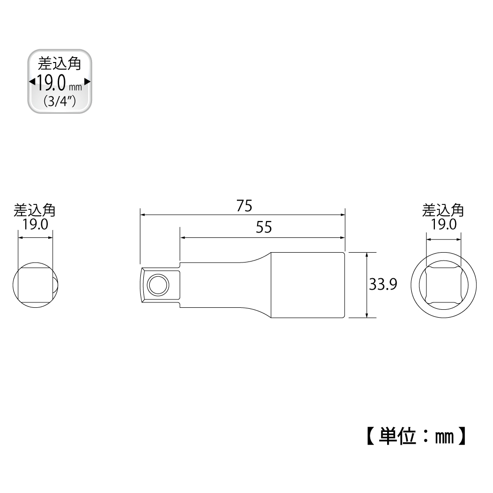 TOP Kogyo EX-6075 Extension Socket (75mm) | EMIN.CO.TH