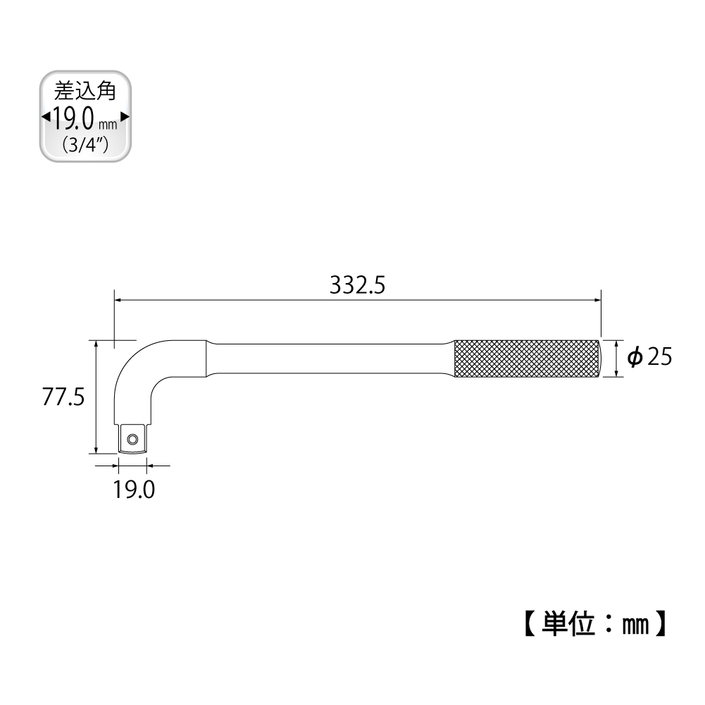 TOP Kogyo LH-6 L-Shaped Handle (3/4'', 332.5mm) | EMIN.CO.TH