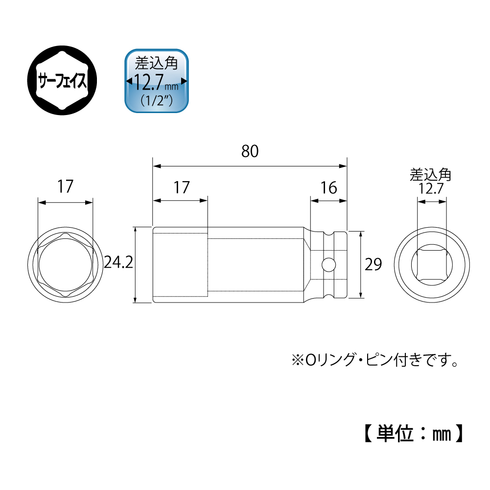 TOP Kogyo PT-417SL Super Long Impact Socket (1/2'', 17mm) | EMIN.CO.TH
