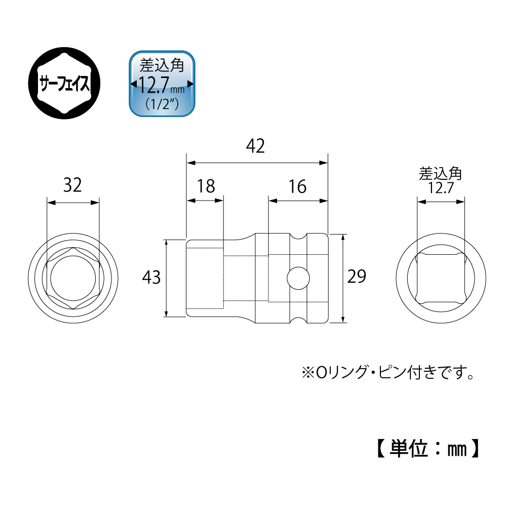 TOP Kogyo PT-432 Impact Socket (1/2'', 32mm) | EMIN.CO.TH