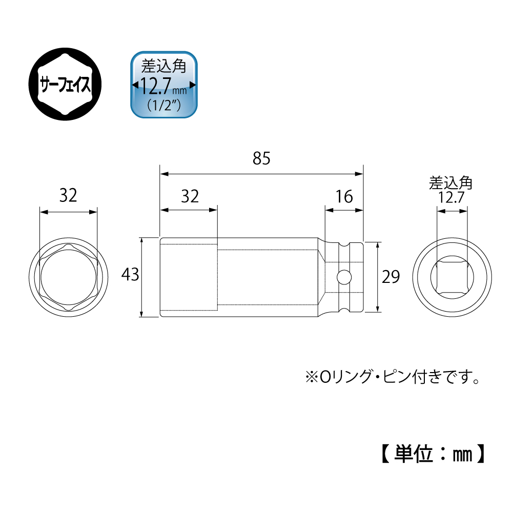 TOP Kogyo PT-432SL Super Long Impact Socket (1/2'', 32mm) | EMIN.CO.TH