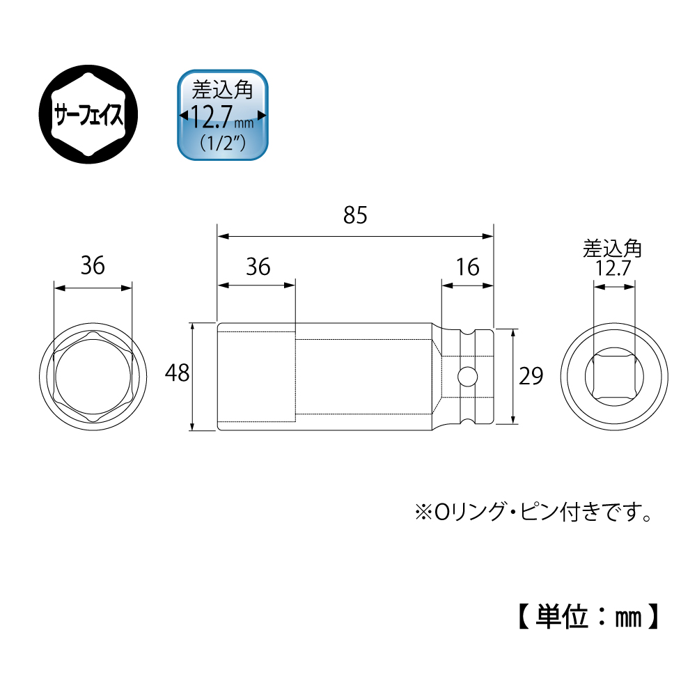 TOP Kogyo PT-436SL Super Long Impact Socket (1/2'', 36mm) | EMIN.CO.TH