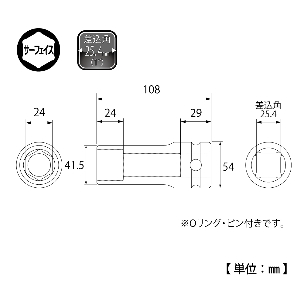 TOP Kogyo PT-824L Impact Deep Socket (1'', 24mm) | EMIN.CO.TH