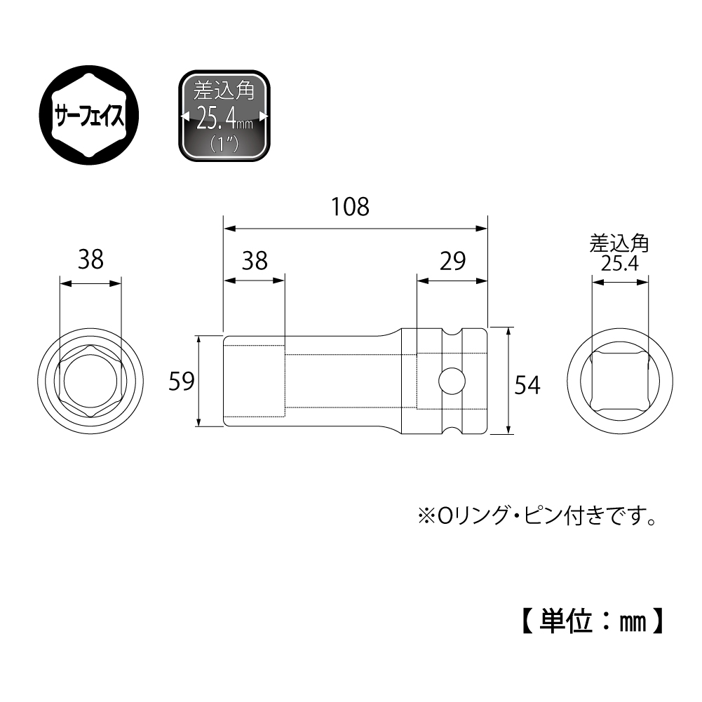 TOP Kogyo PT-838L Impact Deep Socket (1'', 38mm) | EMIN.CO.TH