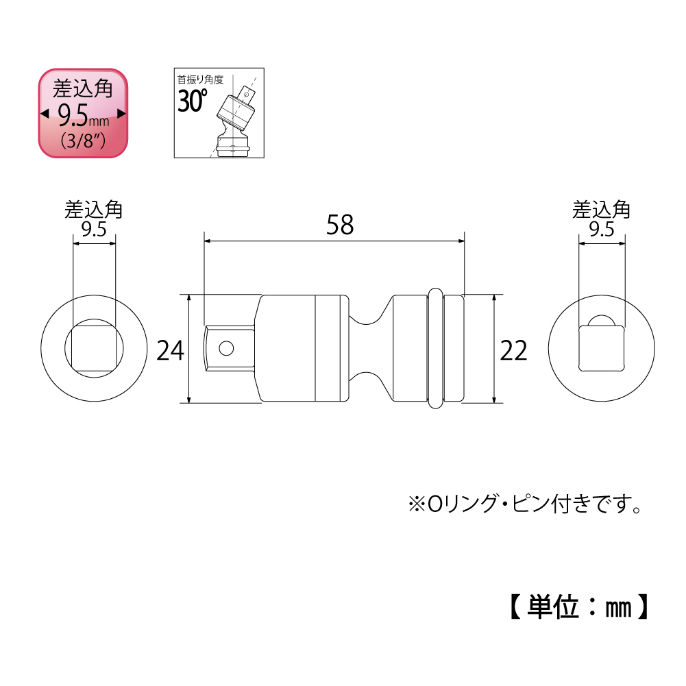 TOP Kogyo PUN-3 Impact Universal Joint (3/8', 58mm) | EMIN.CO.TH