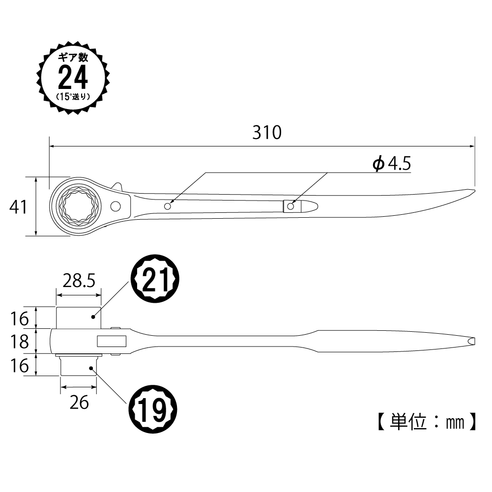 TOP Kogyo RM-19X21N-S Bent Blade Ratchet Wrench (19x21mm) | EMIN.CO.TH