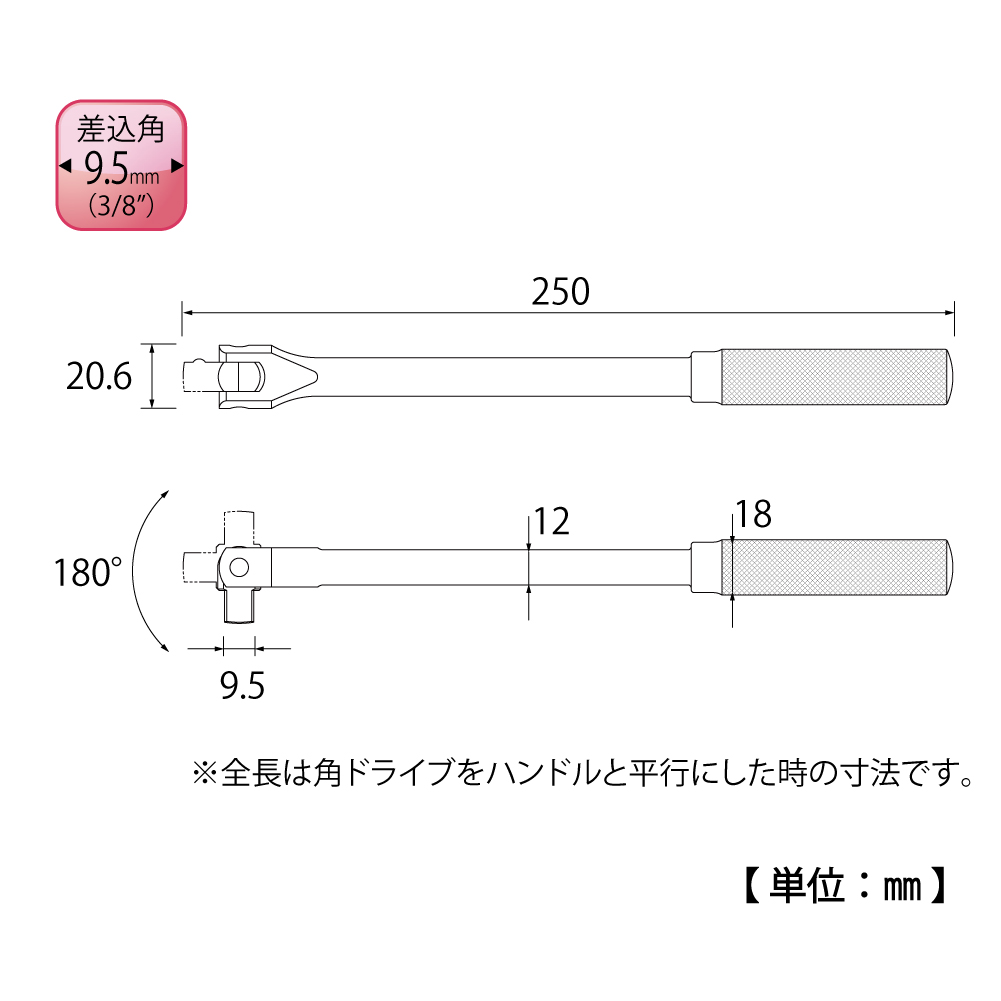 TOP Kogyo S-3 Spinner Handle (3/8'', 250mm) | EMIN.CO.TH