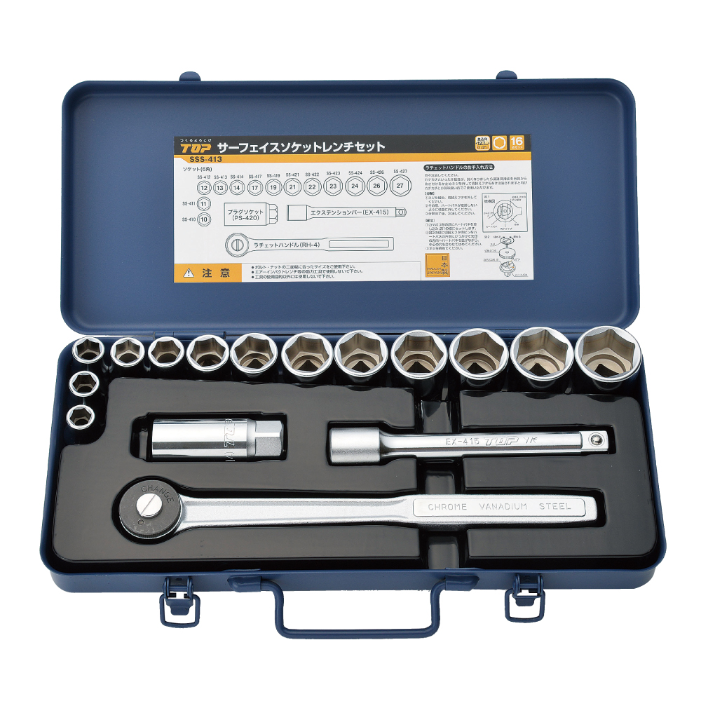 TOP Kogyo SSS-413 Surface Socket Wrench Set 16 Pieces (10, 11, 12, 13, 14, 17, 19, 21, 22, 23, 24, 26, 27mm) | EMIN.CO.TH