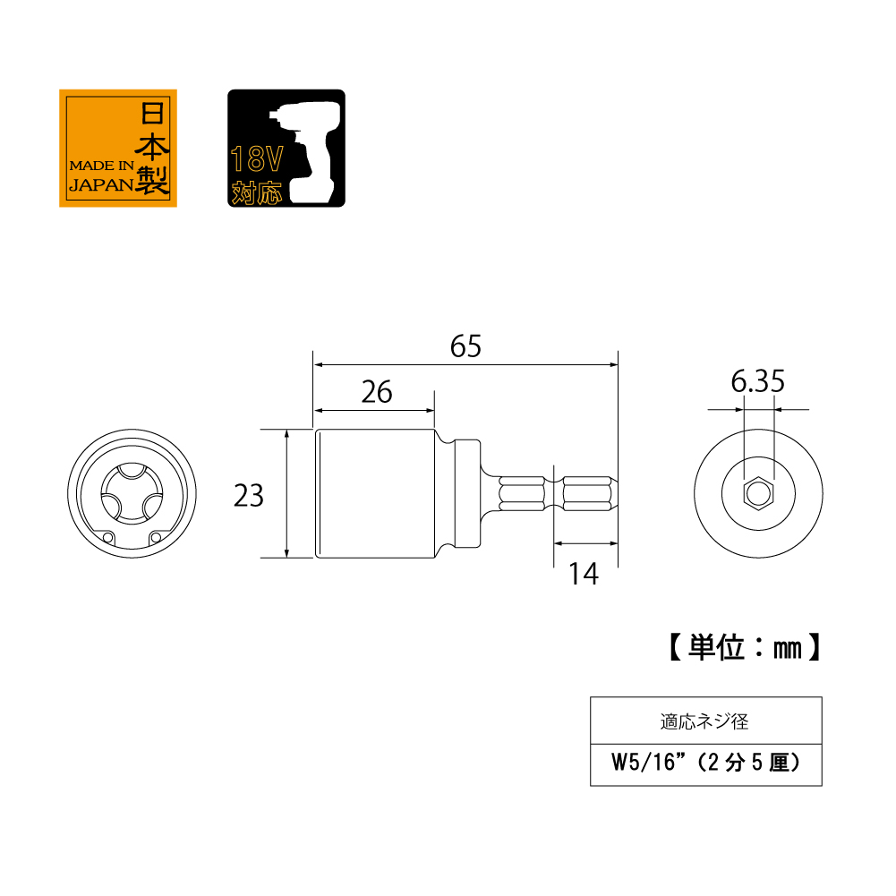 TOP Kogyo ZNS-2.5 Fully threaded socket (M8 / W 5/16") | EMIN.CO.TH