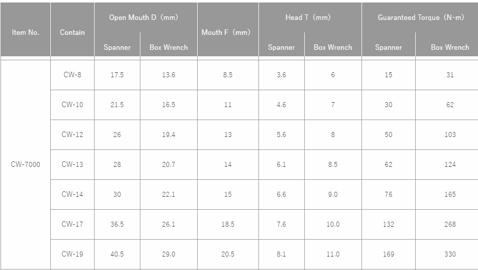 TOP Kogyo CW-7000 Combination Wrench Set (7 pcs/set) | EMIN.CO.TH