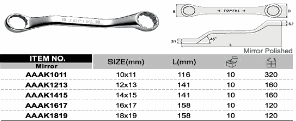 TOPTUL AAAK1011 Midget Double Ring Wrench 45° Offset (10x11 mm) | EMIN.CO.TH