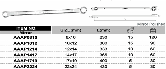 TOPTUL AAAP0810 Flat Type Extra-Long Double Ring Wrench (8x10 mm) | EMIN.CO.TH