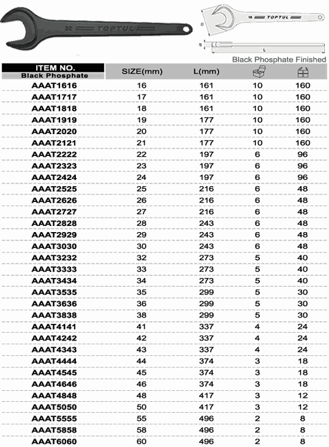 TOPTUL AAAT1616 Single Open End Wrench (16mm) | EMIN.CO.TH