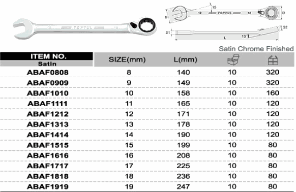 TOPTUL ABAF1414 Pro-Series Reversible Ratchet Combination Wrench | EMIN.CO.TH