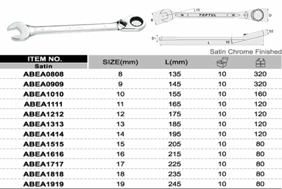 TOPTUL ABEA1919 Reversible Ratchet Combination Wrench (19 mm) | EMIN.CO.TH