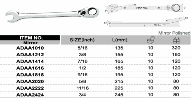 TOPTUL ADAA2222 Reversible Ratchet Combination Wrench (11/16 inch) | EMIN.CO.TH