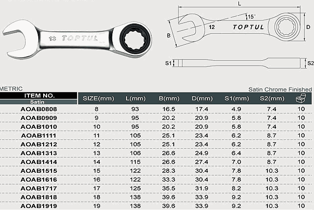 TOPTUL AOAB0909 Stubby Ratchet Combination Wrench (9mm) | EMIN.CO.TH