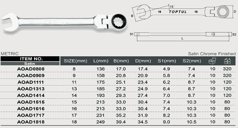 TOPTUL AOAD1111 Flexible Ratchet Combination Wrench (11 mm) | EMIN.CO.TH