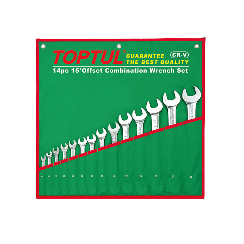 TOPTUL GAAA0804 15° Offset Standard Combination Wrench Set (8pcs) | EMIN.CO.TH