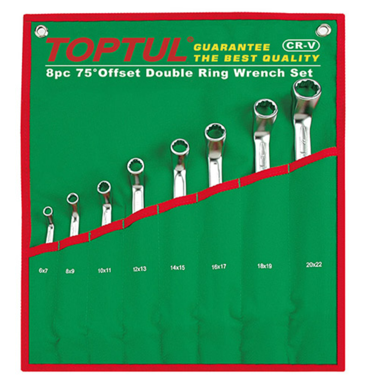 TOPTUL GAAA0810 75° Offset Double Ring Wrench Set (8 pcs, 6-22mm) | EMIN.CO.TH