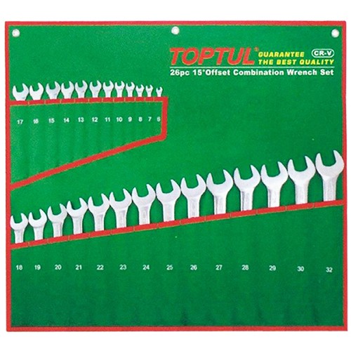 TOPTUL GAAA260415° Offset Standard Combination Wrench Set - POUCH BAG - GREEN (6-32mm) | EMIN.CO.TH