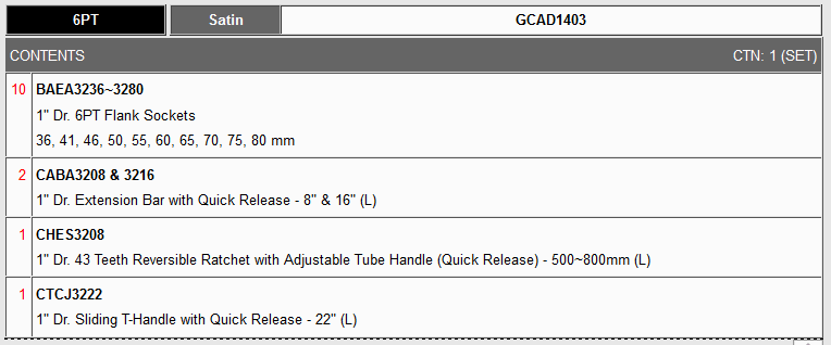 TOPTUL GCAD1403 14PCS Professional Grade 1inch DR. 6PT Flank Socket Set (METRIC) | EMIN.CO.TH