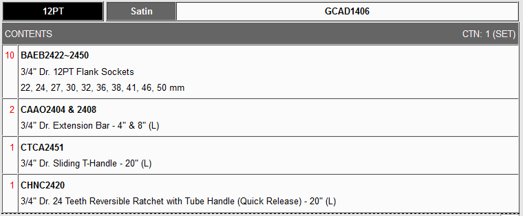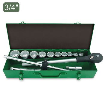 TOPTUL GCAD1406 14PCS Professional Grade - 3/4 inch Dr. 12PT Flank Socket Set (METRIC) | EMIN.CO.TH