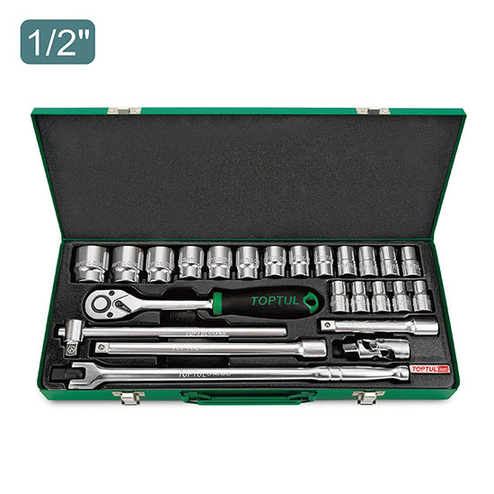 TOPTUL GCAD2404 DR. Socket Set - Satin (1/2", 24 PCS) | EMIN.CO.TH